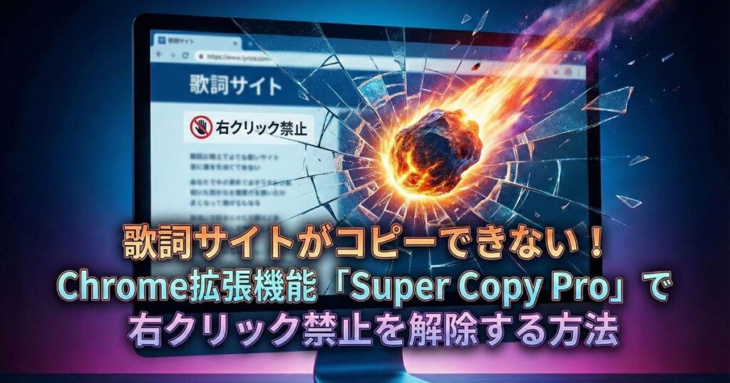 歌詞サイトがコピーできない!Chrome拡張機能「Super Copy Pro」で右クリック禁止を解除する方法【2026年最新】