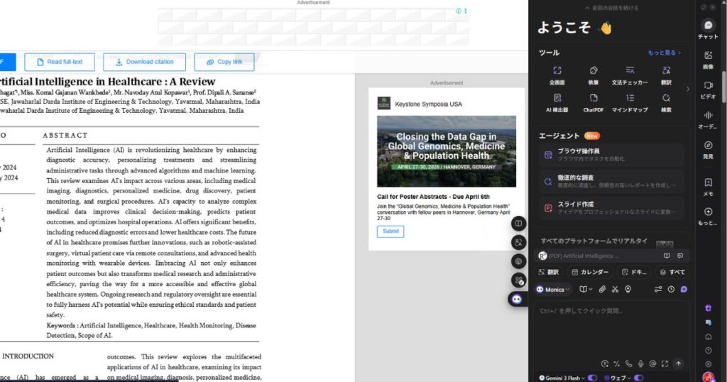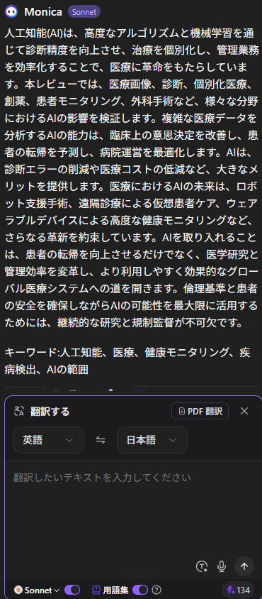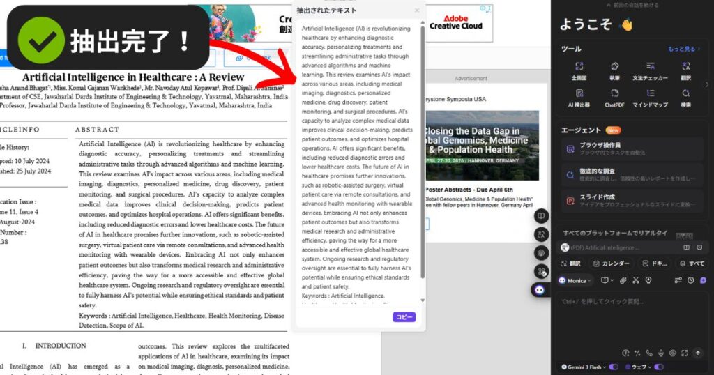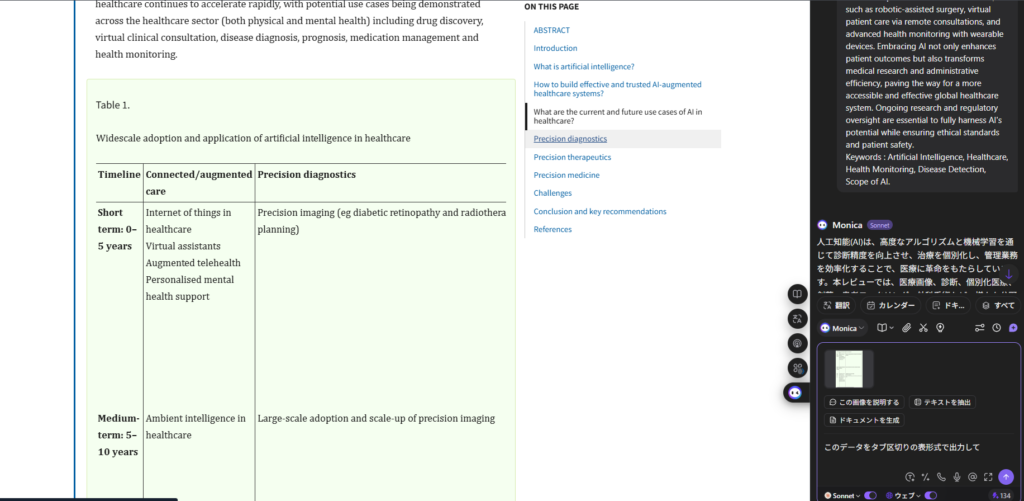 • 読み取ったテキストをそのまま「Monica」のAIチャットに送る