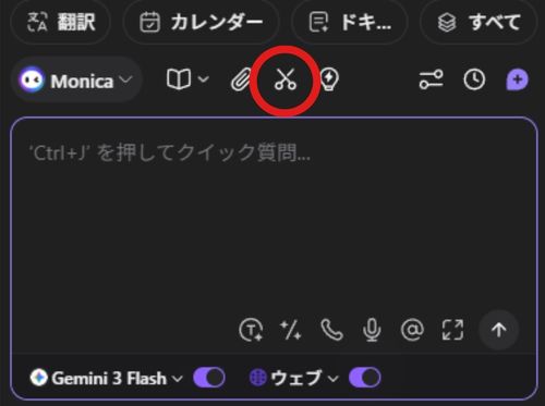 「Monica」アイコンをクリックしサイドバーを呼び出す。