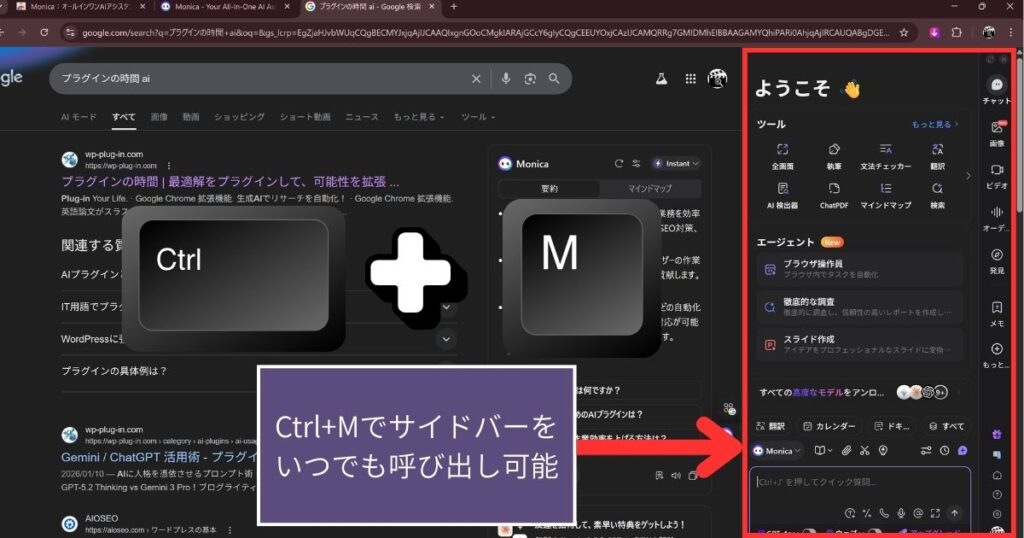 早速ブラウザでCtrl+Mでサイドバーを呼び出してみましょう!