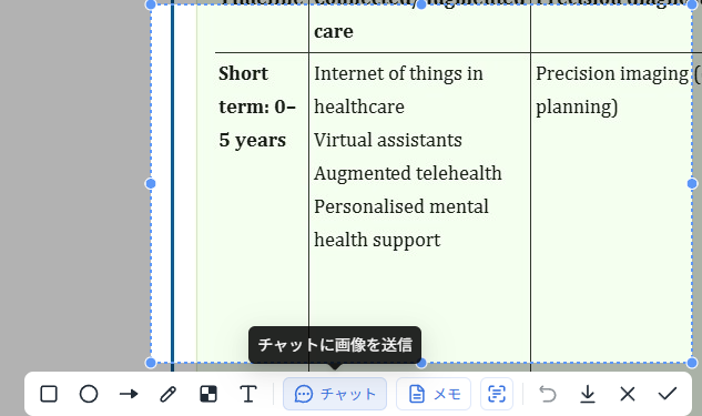 抽出した画像をチャットに送信し、チャットに「表形式に整えて」と指示を出せるからです。