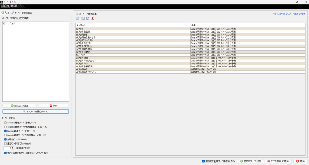 ここでは、「AI ブログ」でキーワードの拡張検索をしてみます。