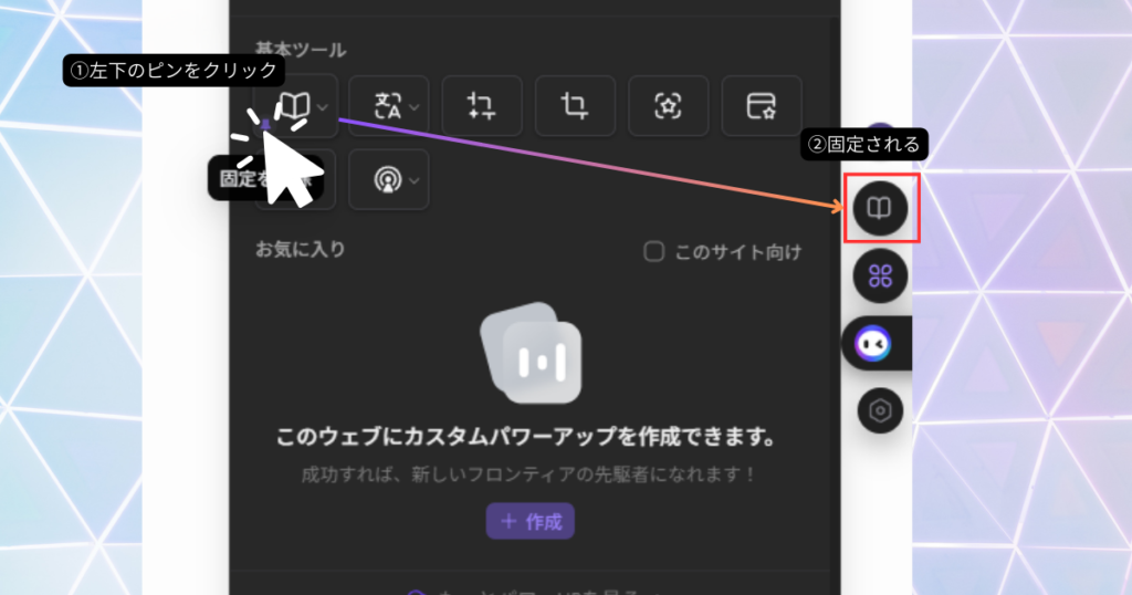 パワーアップキットに要約のショートカットを固定しましょう。
