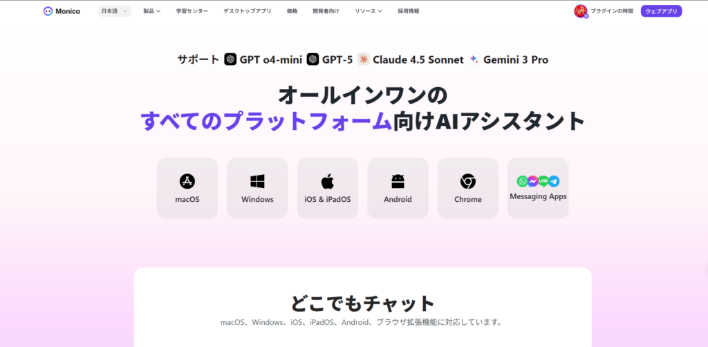 Monicaなら、たった1つの拡張機能で実現できます。要約はもちろん、ChatGPTやGeminiの最新モデルを使ったり、画像やマインドマップを作成したり、様々な作業が一度にこなせます。