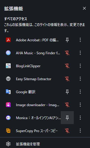 拡張機能をインストールしたら、Monicaの場合はピン止めをする必要がありません。
